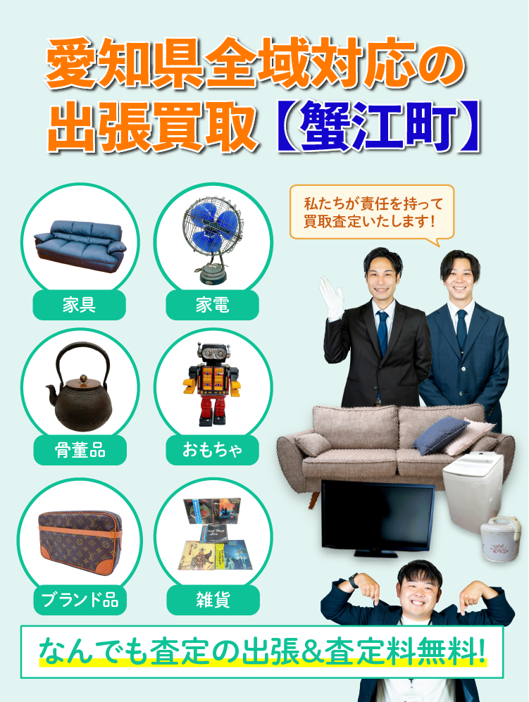 ガリンペイロでは、蟹江町のお客様のもとへ無料でお伺いし、専門スタッフが丁寧に査定。ご不要になったお品物をスムーズに整理するお手伝いをいたします。蟹江町での不用品のお悩みは、ぜひガリンペイロにご相談ください。
